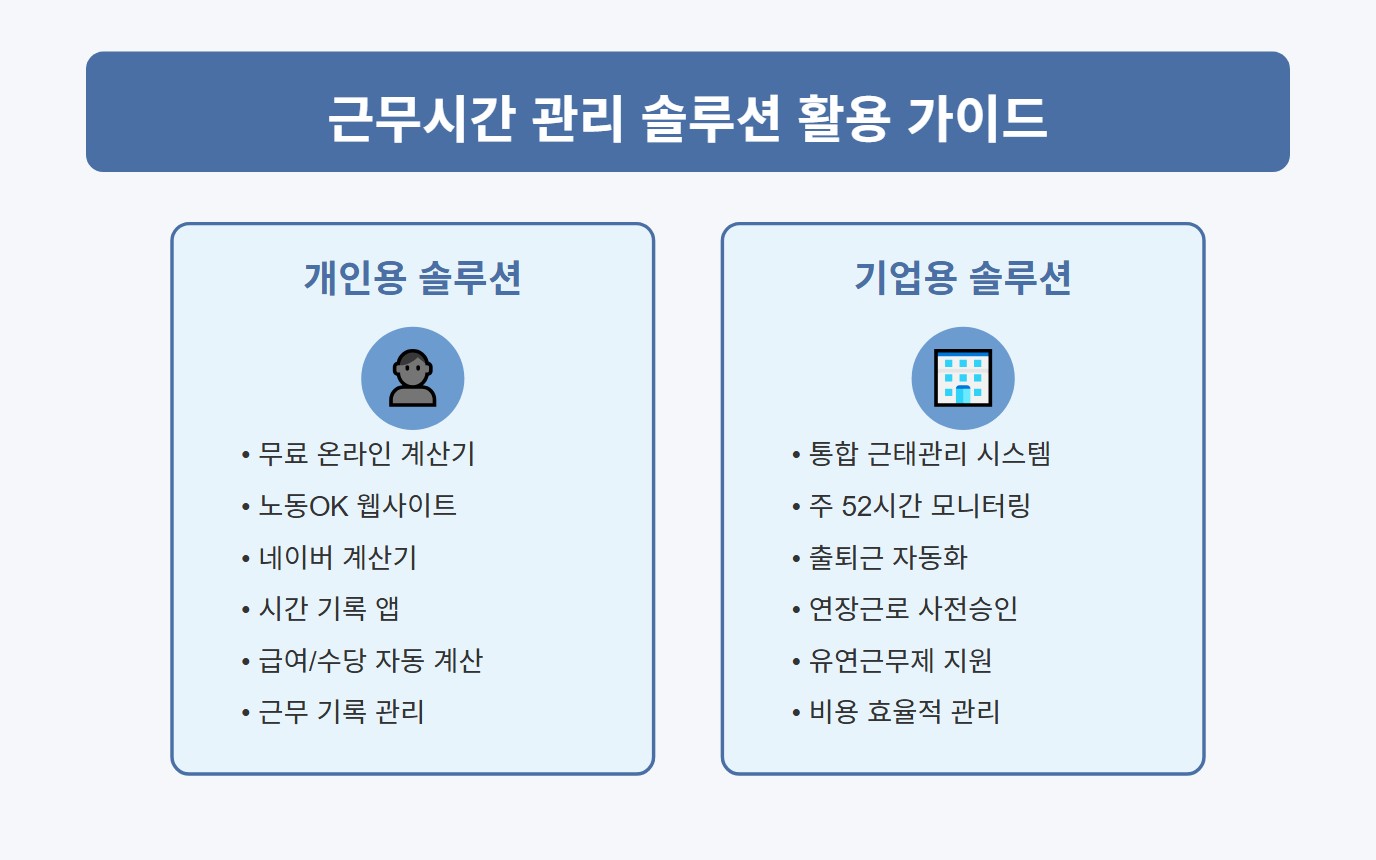 | 모바일 앱 | 시간 기록, 간편 계산 | 프리랜서, 아르바이트 | 무료~월 5천원 |