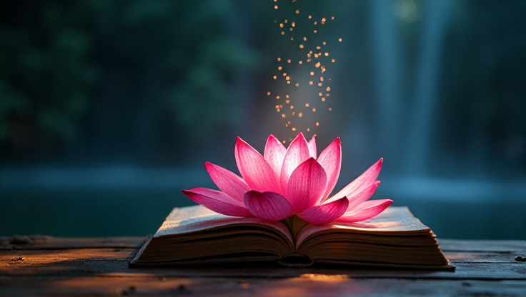 법화경은 우주 근원법과 깨달음을 설한 경전이며, 섬세한 깨달음과 연꽃의 상징으로 알려져 있습니다.