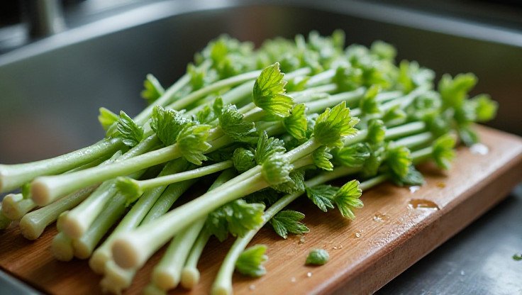 첫째, 줄기와 잎에 묻은 흙과 이물질을 깨끗하게 세척하는 과정입니다.