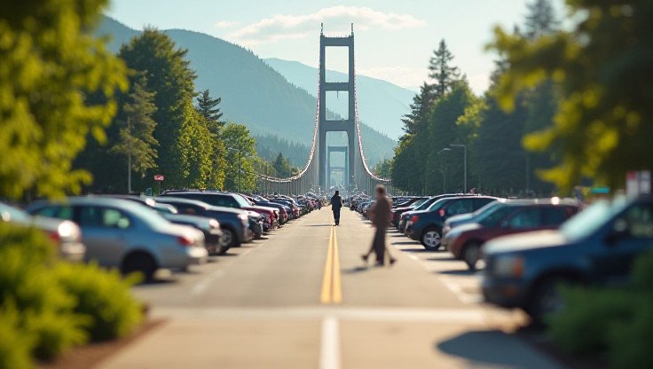 북단 주차장은 다리 초입과 가깝고 약 200m 거리입니다. 넓은 규모에 무료 주차가 가능하지만, 주말과 공휴일에는 붐빌 수 있으므로 이른 방문이 권장됩니다.