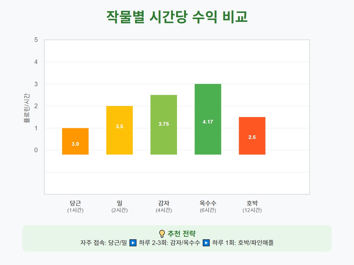 | 작물 | 성장시간 | 판매가 | 시간당 수익 |