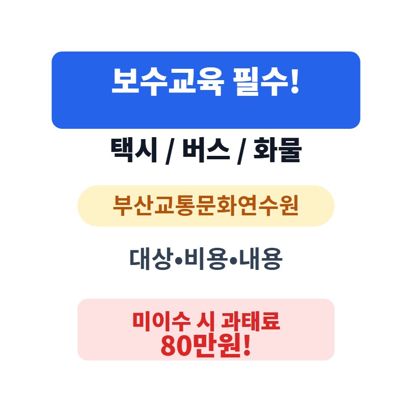 - 보수교육: 기존 운수종사자 대상, 4시간 교육으로 매년 필수 이수