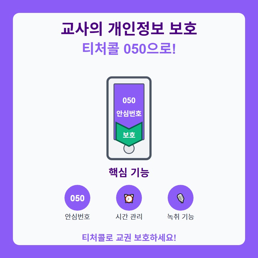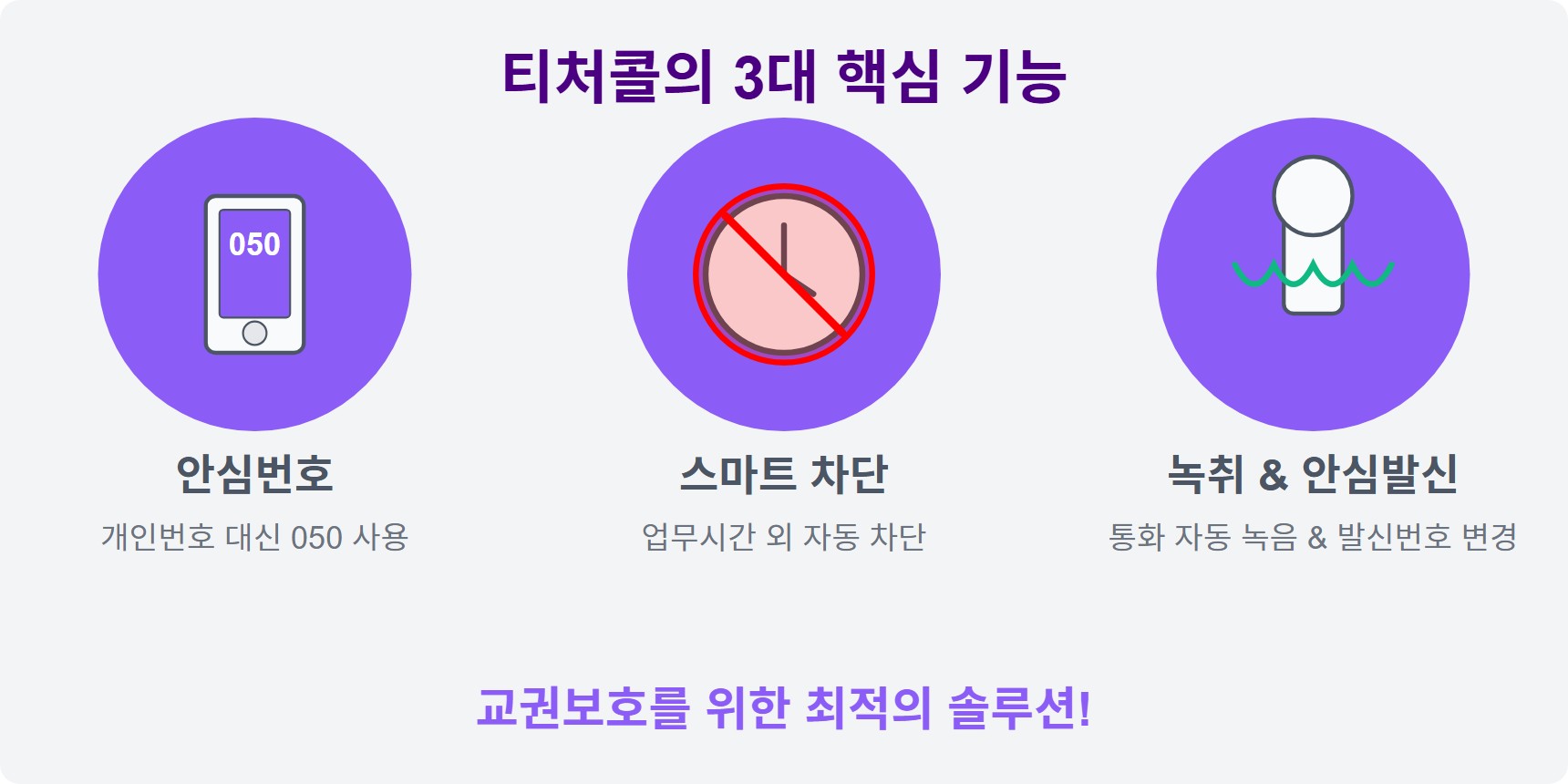 티처콜은 단순한 번호 서비스가 아니라, 교사의 권리를 보호하고 전문성을 높이는 종합 솔루션입니다.