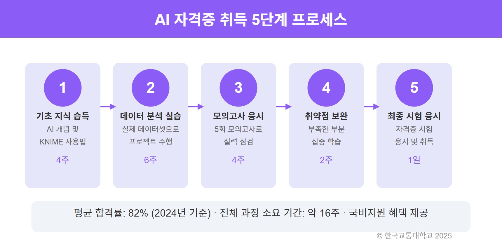 | 인공지능실무활용능력 1급 | 한국교통대/산업인력공단 | ★★★☆☆ | 실무 중심 평가, KNIME 활용 | 높음 |