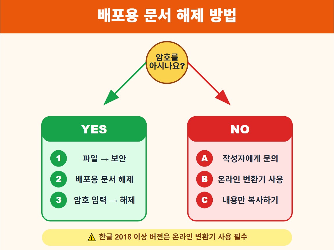 ✅ 배포용 문서: 한글 메뉴 → 보안 → 배포용 문서 해제 (암호 필요할 수 있음)
