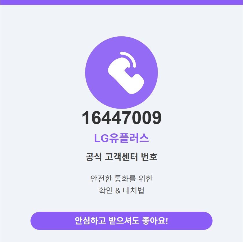안심하세요! 이 번호는 LG유플러스 공식 번호로, 스팸이나 보이스피싱과는 다릅니다.