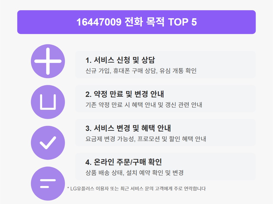 LG유플러스는 다양한 채널을 통해 고객과 소통하고 있으며, 16447009는 주로 온라인 서비스 이용 고객을 위한 전용 상담 번호입니다.
