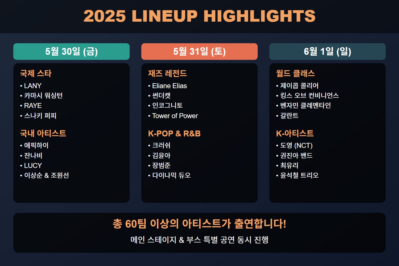 서울재즈페스티벌 2025의 모든 것을 한 번에 파헤칩니다.