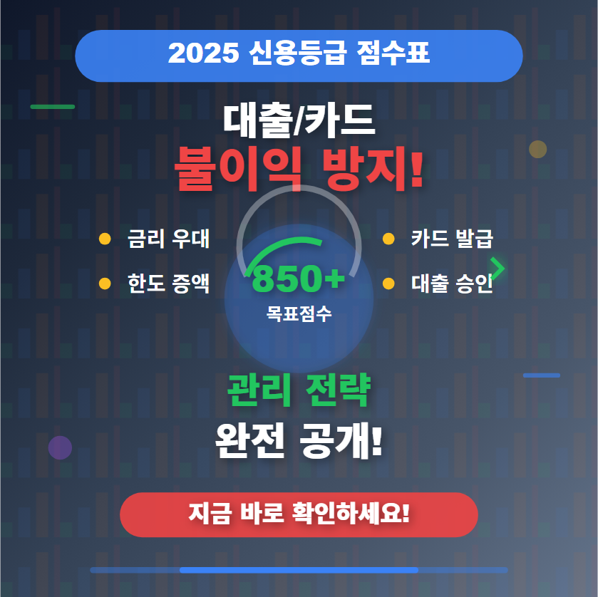이처럼 2025년 기준에 맞춘 체계적인 관리는 대출과 카드 발급 시 불이익을 예방하는 최적의 방법입니다.