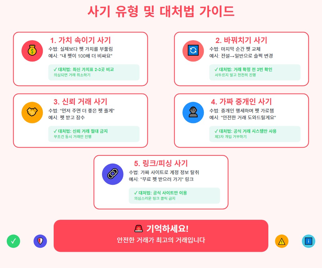 | 거래 상대 신뢰도 | 프로필과 이전 거래 내역 확인 | 신규 계정은 주의 |
