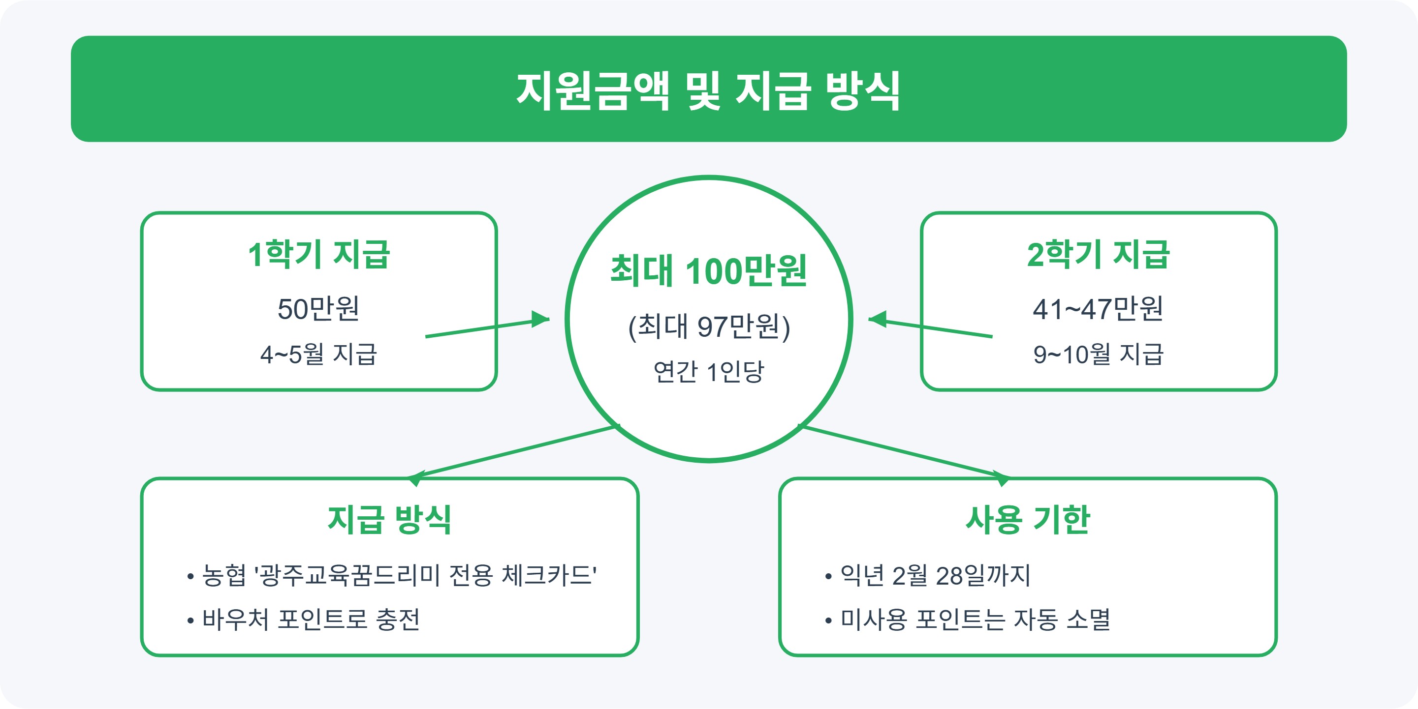 - 학생 1인당 연 최대 100만 원 (실제 최대 97만 원까지 차등 지급)