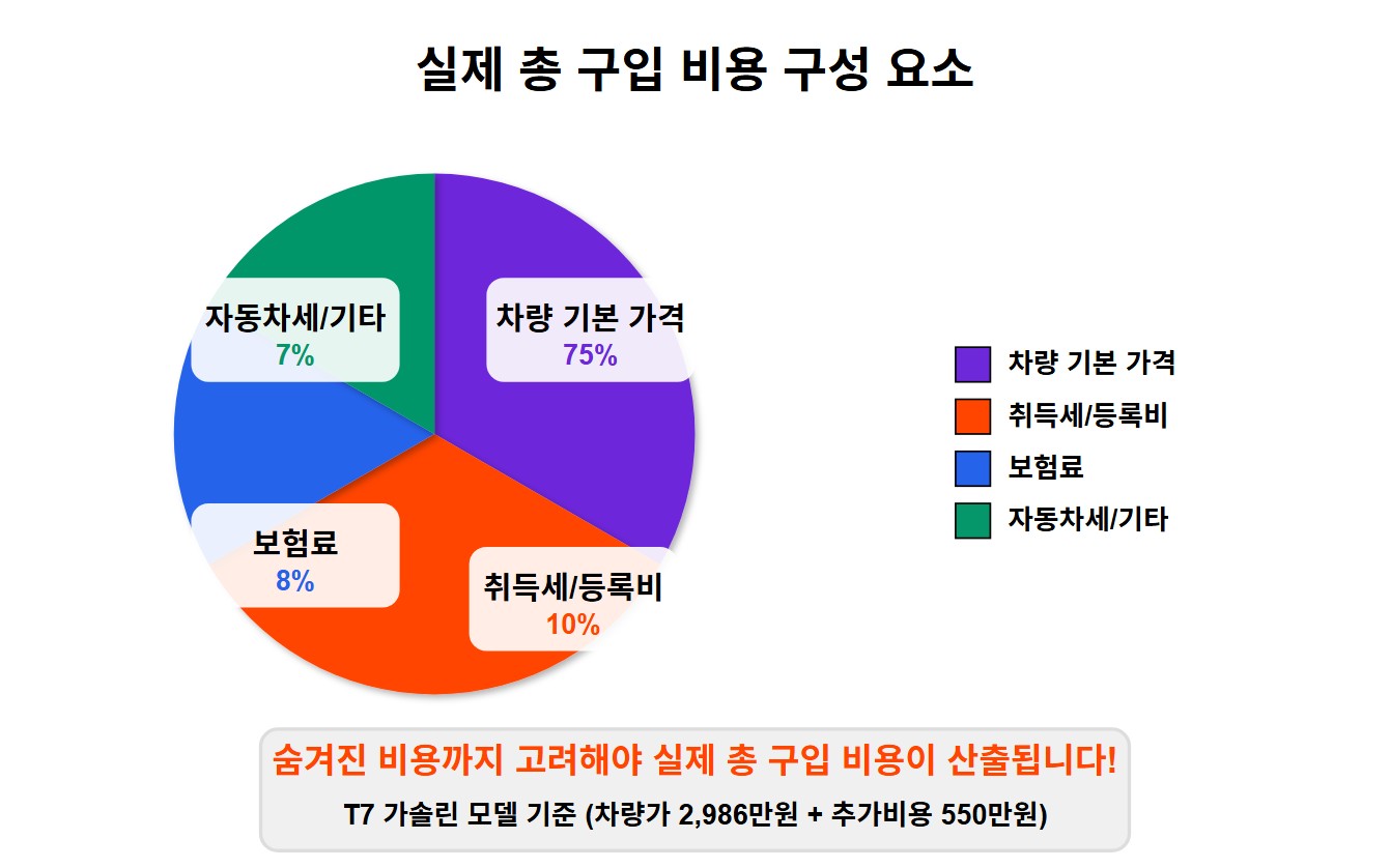 총 구입 비용 예시 (T7 가솔린 모델 기준)